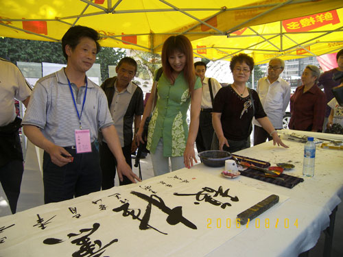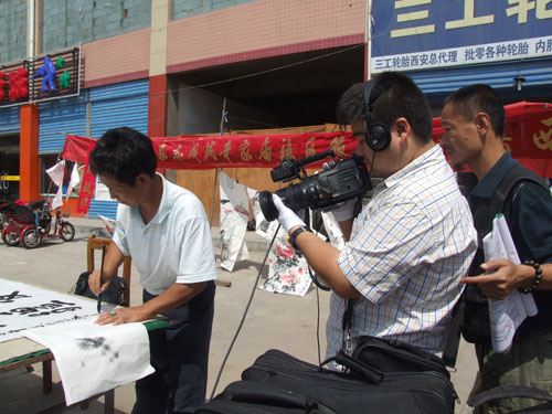 挥毫现场采访