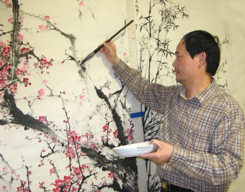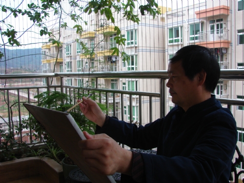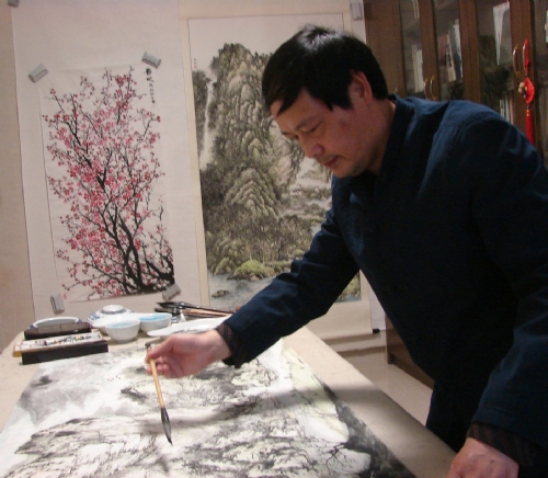 曾永松在创作山水画